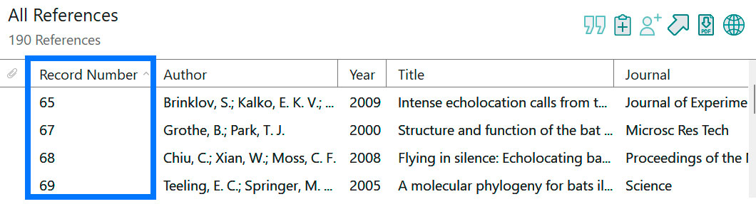 Tip: To check which reference was used in Word, look at the record number. You can unformat citations in Word to identify this — see Unformatting citations and bibliographies in the Using Word page.