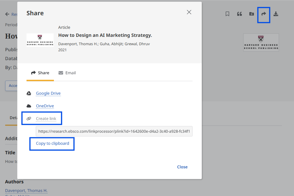 From EBSCOhost Business Source Complete, locate the article, select the share button, then create link and copy to clipboard.